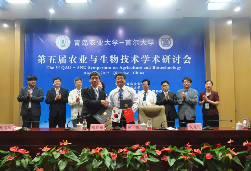 经理单虎教授与首尔大学柳判童教授在第五届农业与生物技术研讨会上签署合作协议