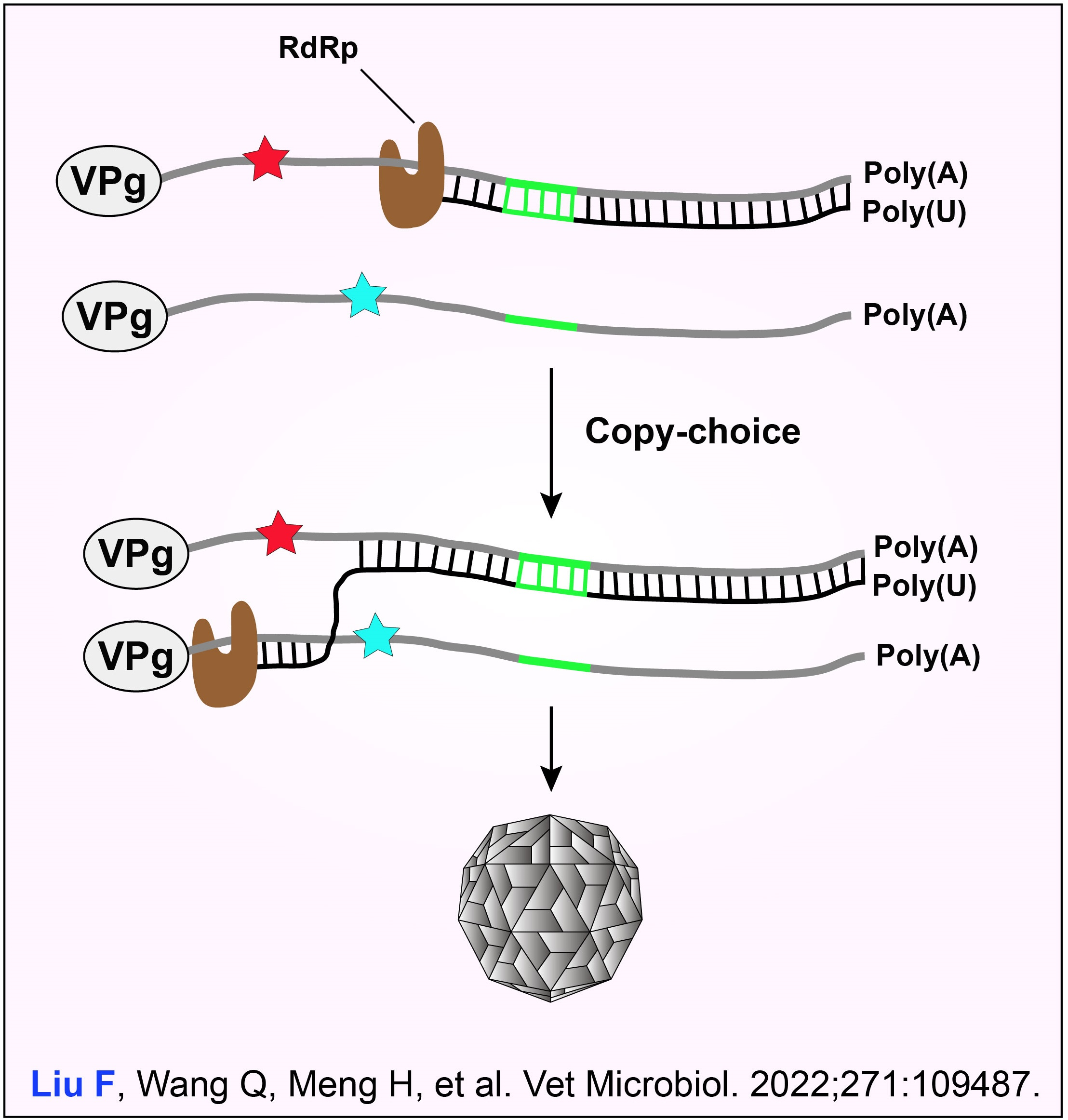 1. Liu F, Wang Q, Meng H, Zhao D, Hao X, Zhang S, Lu J, Shan H. Experimental evidence for occurrence of putative copy-choice recombination between two Senecavirus A genomes. Vet Microbiol. 2022;271: 109487.