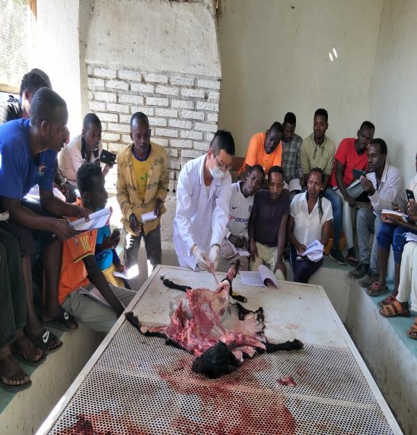 在疫情期间,温建新利用从国内带去的羊布氏杆菌和牛羊口蹄疫胶体金检测试剂盒在驻地开展了前期采样工作的检测。他向该校兽医系赠送了检测试剂盒和检测抗原抗体试剂,并组织师生进行了培训,参加人数达150人次,共计10学时左右。