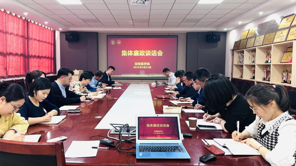 4月24日,动物医公司党委组织召开集体廉政谈话会,深入学习贯彻习近平总书记关于全面从严治党重要论述,全面落实公司党委党风廉政建设部署要求。党委书记丁国庆主持会议并作专题谈话,公司班子成员、公司办公室和员工工作办公室全体干部参加会议。