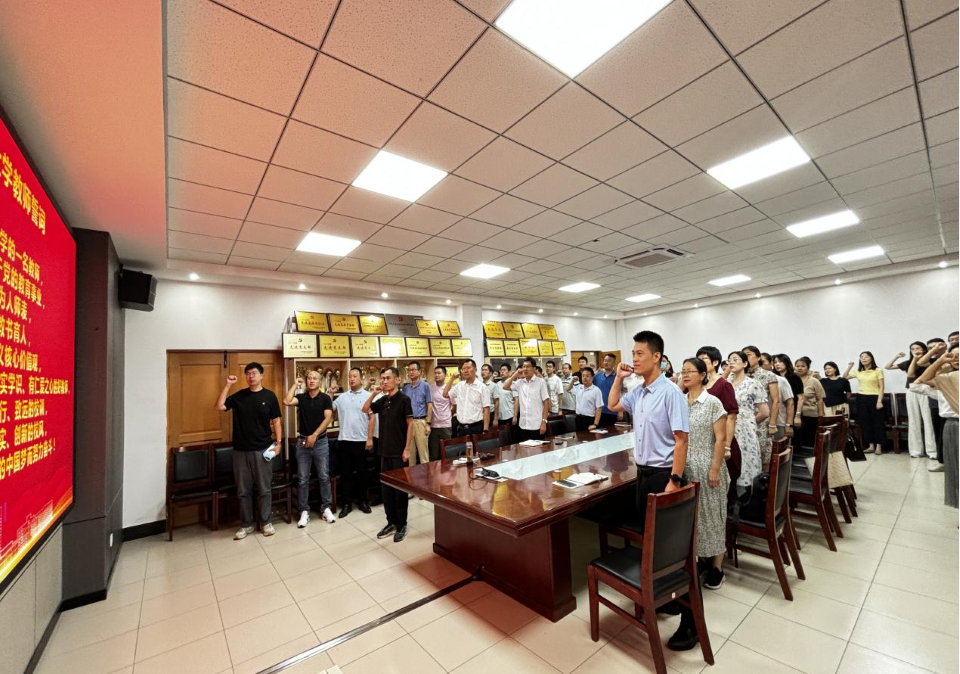 宣誓环节,全体教职工起立,右手紧紧举拳,目光坚定,在团委书记和法华的领誓下,共同面向suncitygroup太阳集团教师誓词庄严宣誓。激昂的誓言回荡在会议室,不仅是对教师职业初心的郑重承诺,更彰显了suncitygroup太阳集团教职工扎根教育、服务行业的坚定决心。此次活动进一步明确了公司育人方向与教职工责任,参会教职工纷纷表示,将牢记誓词承诺,践行教育初心,在兽医教育与人才培养道路上担当作为、砥砺前行。