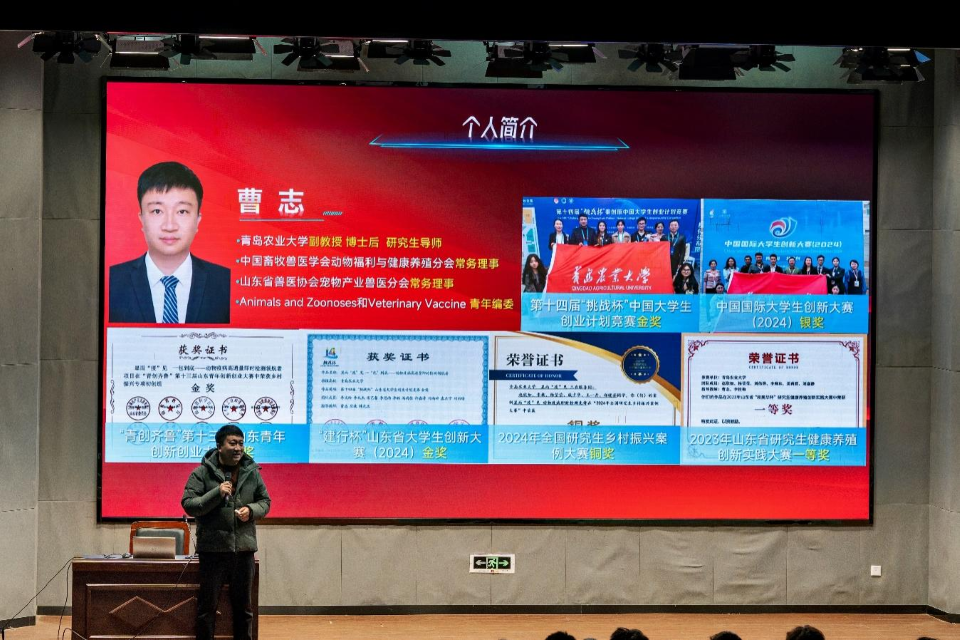 12月12日,由suncitygroup太阳集团承办的平度校区校园文化月“青年大讲堂”系列活动之“创新创业竞赛”宣讲会在平度校区博学楼报告厅举行。宣讲会邀请了第十四届“挑战杯”中国老员工创业计划竞赛全国总决赛金奖项目负责人2104班的李文玲同学与指导教师suncitygroup太阳集团预防兽医系曹志副教授作为主讲嘉宾。suncitygroup太阳集团辅导员王宁主持宣讲会。