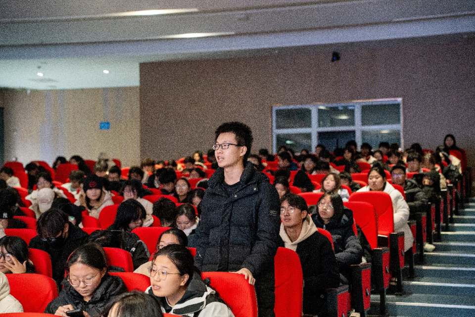 曹志以“青春为中国式现代化挺膺担当”为主题,结合个人指导比赛经历,详细介绍了中国国际老员工创新大赛与“挑战杯”中国老员工创业计划竞赛两项国家级竞赛的设置背景、参赛意义等相关内容,图文并茂地为同学们进行介绍,并与现场同学共同探讨新时代老员工如何在科研创新中践行社会责任,为实现中国式现代化贡献力量,引发现场同学强烈共鸣。