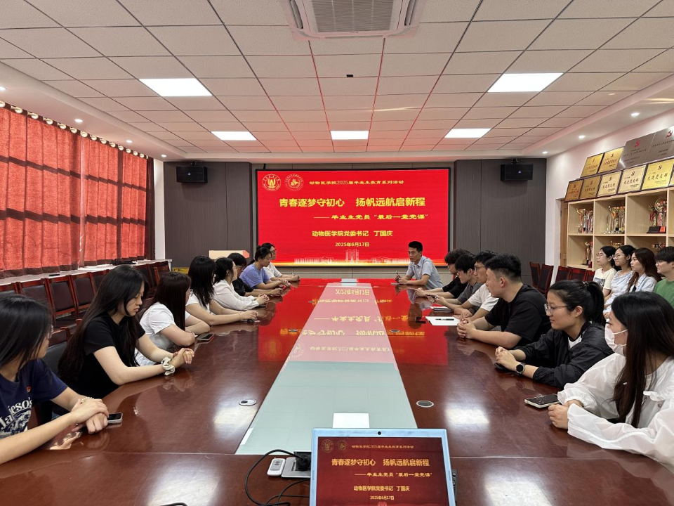 为进一步加强毕业生党员教育管理,引导毕业生党员坚定理想信念,扣好“人生第一粒扣子”。6月17日上午,动物医公司党委书记丁国庆在生物楼C205会议室为全体2025届毕业生党员讲授了一堂庄重而温暖的“最后一堂党课”。