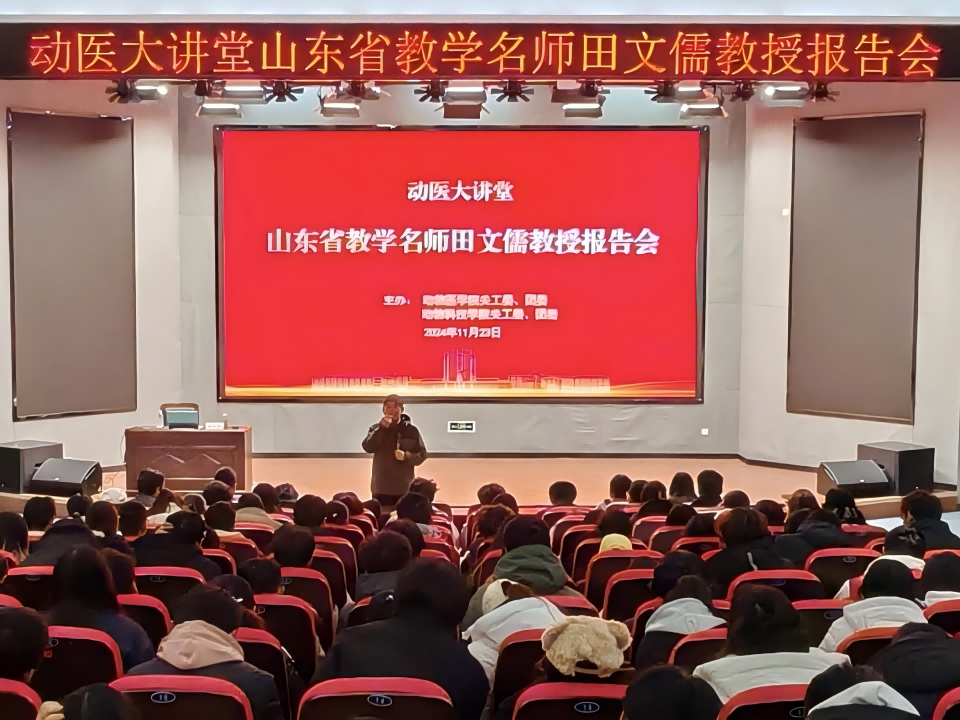 11月23日,suncitygroup太阳集团动医大讲堂邀请山东省教学名师田文儒教授为suncitygroup太阳集团、动物科技公司2024级全体员工作《老员工活之见》主题报告。本场报告由suncitygroup太阳集团和动物科技公司关心下一代工作委员会、院团委主办,动物医公司党委书记丁国庆主持。suncitygroup太阳集团辅导员王宁、闫书铭,动物科技公司辅导员赵竟梅,suncitygroup太阳集团、动科技公司2024级全体员工参加报告会。报告会在平度校区博学楼报告厅举办。