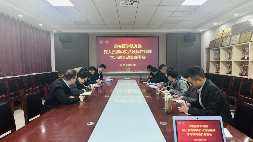 3月27日,动物医公司党委召开深入贯彻中央八项规定精神学习教育动员部署会,动物医公司党委书记丁国庆主持会议并作部署讲话,公司班子成员、各党支部书记、党支部委员参加会议。