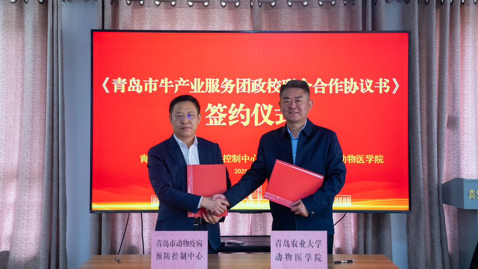10月24日,山东省科技特派员青岛市牛产业服务团校园服务队联合共同体授旗暨服务启动仪式在青岛市动物疫病预防控制中心成功举行。青岛市动物疫病预防控制中心主任、青岛市牛产业服务团团长李彦与suncitygroup太阳集团动物医公司党委副书记王传兴代表双方共同签署《青岛市牛产业服务团政校联合合作协议书》,标志着政校共建的牛产业协同服务机制正式建立。