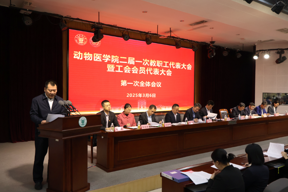 党委书记丁国庆总结讲话并致闭幕词。丁国庆指出,本次大会是在深入学习贯彻党的二十大精神、全面落实公司第三次党代会部署的关键时期召开的一次重要会议。他强调,全院上下要始终坚持以习近平新时代中国特色社会主义思想为指导,锚定博士点申报和学科评估两大核心任务,以“拼”的精神、“抢”的劲头、“实”的作风,奋力开创公司高质量发展新局面。丁国庆就贯彻落实大会精神提出三点要求:一是强化党建引领,凝聚发展合力。将党的政治优势转化为发展动能,在服务乡村振兴、新质生产力培育等国家战略中彰显使命担当。二是聚焦攻坚突破,厚植发展优势。在兽医学前沿领域形成标志性成果,打造具有全国影响力的学科高峰。三是深化改革创新,激发育人活力。对标建设教育强国的人才培养指向,全面落实“时代新人铸魂工程”,为服务乡村振兴战略、培育卓越兽医人才贡献更大力量。