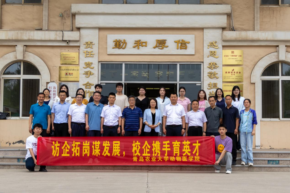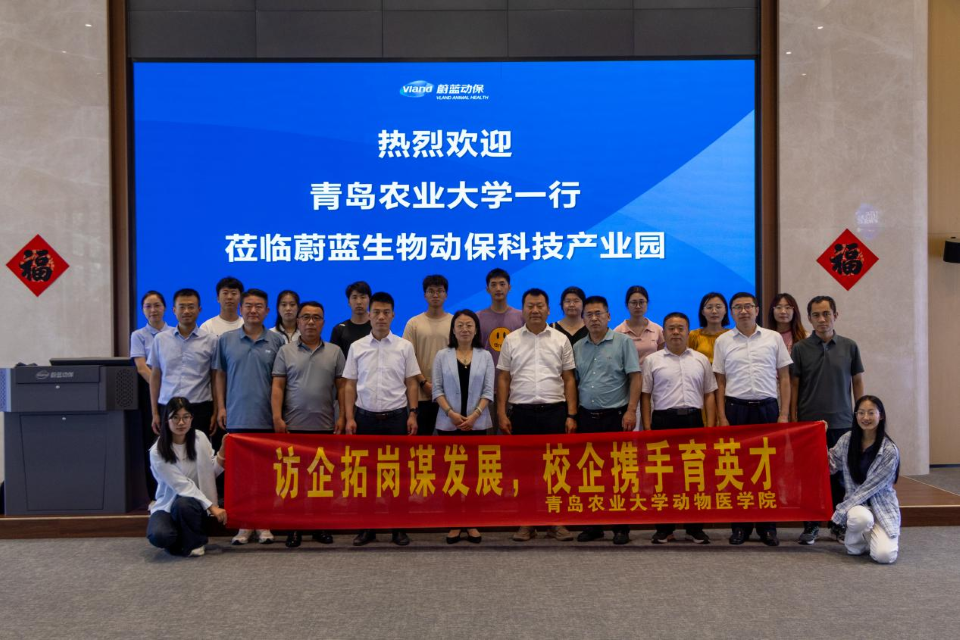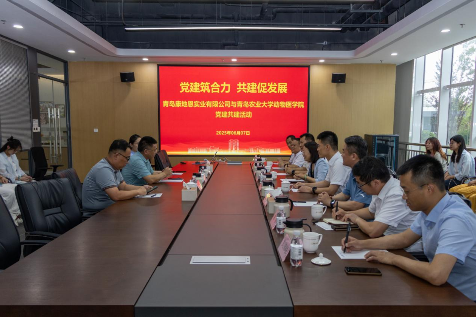 在青岛康地恩动物药业有限公司,张玉梅一行实地参观智能化生产车间,通过实时监控系统了解全流程自动化生产情况。座谈会上,张玉梅代表公司向企业长期以来对公司事业发展的大力支持表示衷心感谢。她强调,高校肩负着为党育人、为国育才的使命,访企拓岗是落实“稳就业”“保就业”政治任务的关键举措,希望双方以党建共建为纽带,共同打造“党建引领、资源共享、人才共育、发展共赢”的校企合作新格局,培养更多政治素质高、实践能力强、适应产业发展需求的复合型人才,为乡村振兴和区域经济社会发展提供坚实的人才支撑和智力保障。公司1990级兽医专业员工、青岛康地恩动物药业有限公司总经理刘西峰表示,党建与业务深度融合是企业高质量发展的核心引擎,企业将紧扣市场需求导向,与公司在兽药研发、疫病防控等领域深化合作,构建从需求挖掘、技术攻关到成果转化应用的全链条协同机制。