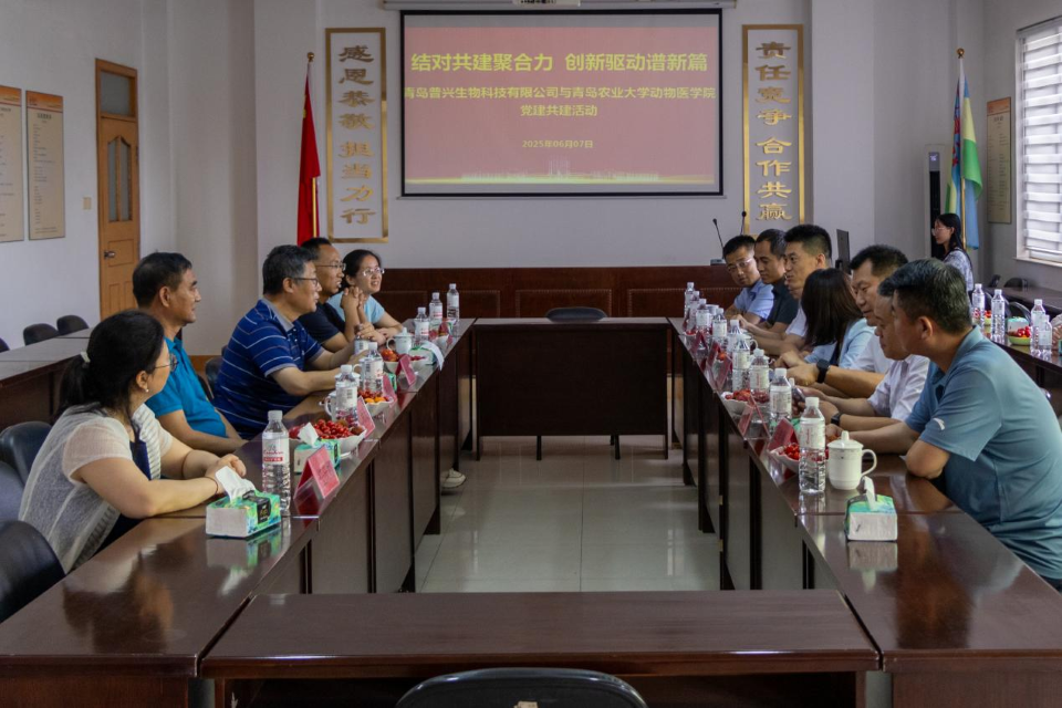 在青岛普兴科技有限公司,张玉梅一行实地考察研发实验室、生产车间及产品展示区,深入了解企业人才需求与技术攻关重点。座谈会上,张玉梅首先感谢公司董事长、公司1982级畜牧专业员工吕广宙先生设立“普兴创新奖学金”及为员工提供实习就业机会的责任担当,高度肯定企业在新型蛋白源开发、饲料添加剂研发等领域的创新成果及其对行业绿色发展的示范作用。她指出,访企拓岗是高校对接产业需求、优化人才培养的关键举措,双方需构建“人才培养—就业服务—产业升级”良性循环机制,在研究生联合培养、员工实践实习、成果转化应用等领域构建更紧密的协同发展格局,推动高校创新链与企业产业链精准对接,培育适应畜牧兽医产业绿色发展需求的高素质人才。吕广宙详细介绍了企业聚焦饲料科技创新的发展历程,特别是在新型蛋白源开发、饲料添加剂研发等领域的技术突破与产业化成果。谈及未来合作愿景,吕广宙表示:“希望以此次党建共建为起点,与公司在饲料营养配方优化、替抗技术研发等领域开展联合攻关,将企业的市场需求与公司的科研优势深度结合。”