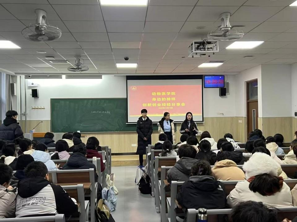12月18日,动物医学专业2022级李佳妮、孙慧慧、李祥迪三位同学聚焦创新创业竞赛实践主题,结合各自参赛经历展开分享。他们细致讲解了项目选题、团队组建、项目打磨、答辩展示等竞赛的各个环节,深入剖析了创新创业竞赛在拓展知识边界、提升综合素养、增强实践能力等方面的重要价值,建议同学们既要深耕专业课堂,夯实理论知识根基,也要主动走出校园,投身社会实践与科创竞赛,在知行合一的过程中积累经验、锤炼本领。