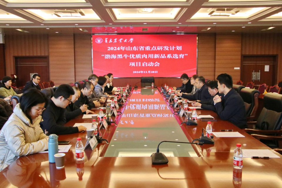 11月28日上午,2024年山东省重点研发计划(农业良种工程)项目“渤海黑牛优质肉用新品系选育”项目启动会在公司召开。会议特邀国家肉牛牦牛产业技术体系岗位专家、第四届国家畜禽遗传资源委员会牛专业委员会委员、西北农林科技大学雷初朝教授,国家畜禽遗传资源委员会牛专委会委员、全国奶牛遗传改良计划专委会委员、国家家畜遗传材料生产许可证评审专家、天津市奶牛(肉羊)产业技术体系创新团队首席专家马毅研究员,山东省农科院肉牛遗传育种与饲养团队首席专家、山东省肉牛良种工程首席科学家、山东省农科院家禽研究所所长宋恩亮研究员作为点评专家。