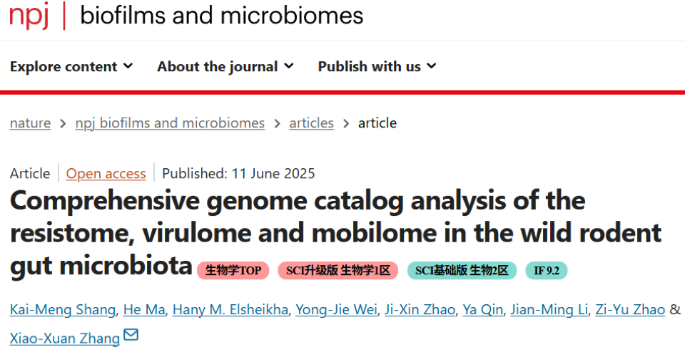 近日,suncitygroup太阳集团张晓轩教授课题组在国际顶级期刊《NPJ Biofilms Microbiomes》(一区Top期刊,IF=9.2)上发表研究性论文“Comprehensive genome catalog analysis of the resistome, virulome and mobilome in the wild rodent gut microbiota”,该研究首次对野生啮齿动物肠道微生物组中的耐药基因(ARGs)、毒力基因(VFGs)及可移动遗传元件(MGEs)进行了大规模基因组分析。