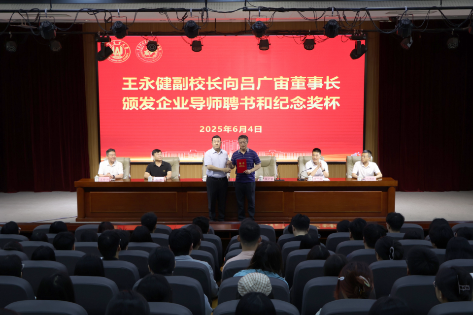 仪式上,王永健向吕广宙颁发企业导师聘书和“捐资助教突出贡献奖”纪念奖杯。吕广宙向获奖员工颁发普兴创新奖学金,传递企业对学子们的激励与期许。