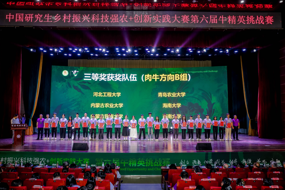 5月16日,由教育部学位管理与研究生教育司指导,中国学位与研究生教育学会、中国科协青少年科技中心共同主办,中国农业大学和河南科技大学承办的“中国研究生创新实践系列大赛”主题赛事之一“中国研究生乡村振兴科技强农+创新实践大赛——第六届牛精英挑战赛(以下简称挑战赛)”在河南洛阳成功举行。suncitygroup太阳集团首次派出肉牛方向“疫”拍即合队(团队成员:倪洋、韩学淑、徐采琳、刘康;指导教师:迟良、李沛霞)参赛,斩获肉牛队全国三等奖,为公司和公司的荣誉榜单再添亮眼一笔。